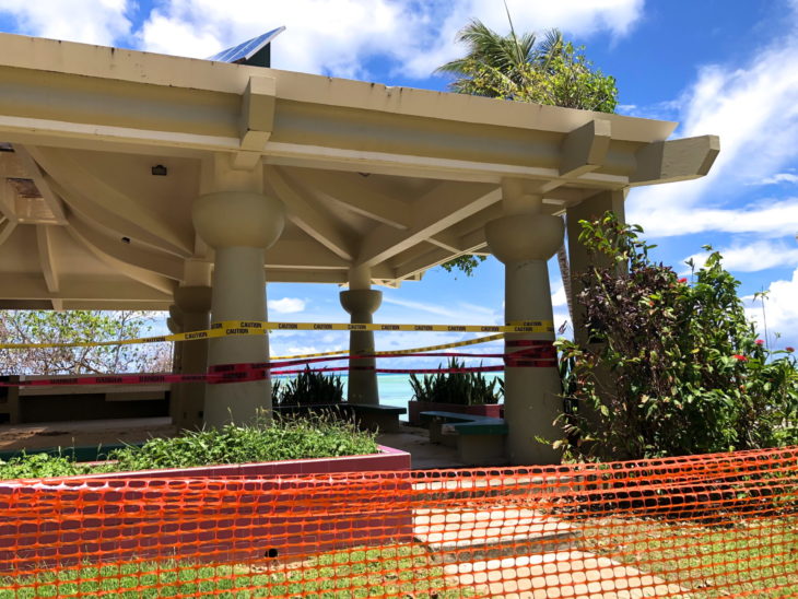 何年か前にも一度ビーチ沿いに作られた遊歩道とお手洗いが波で崩れたことがあり、そのときはかなり内側に作り直したので今回もそうなるんでしょうか?